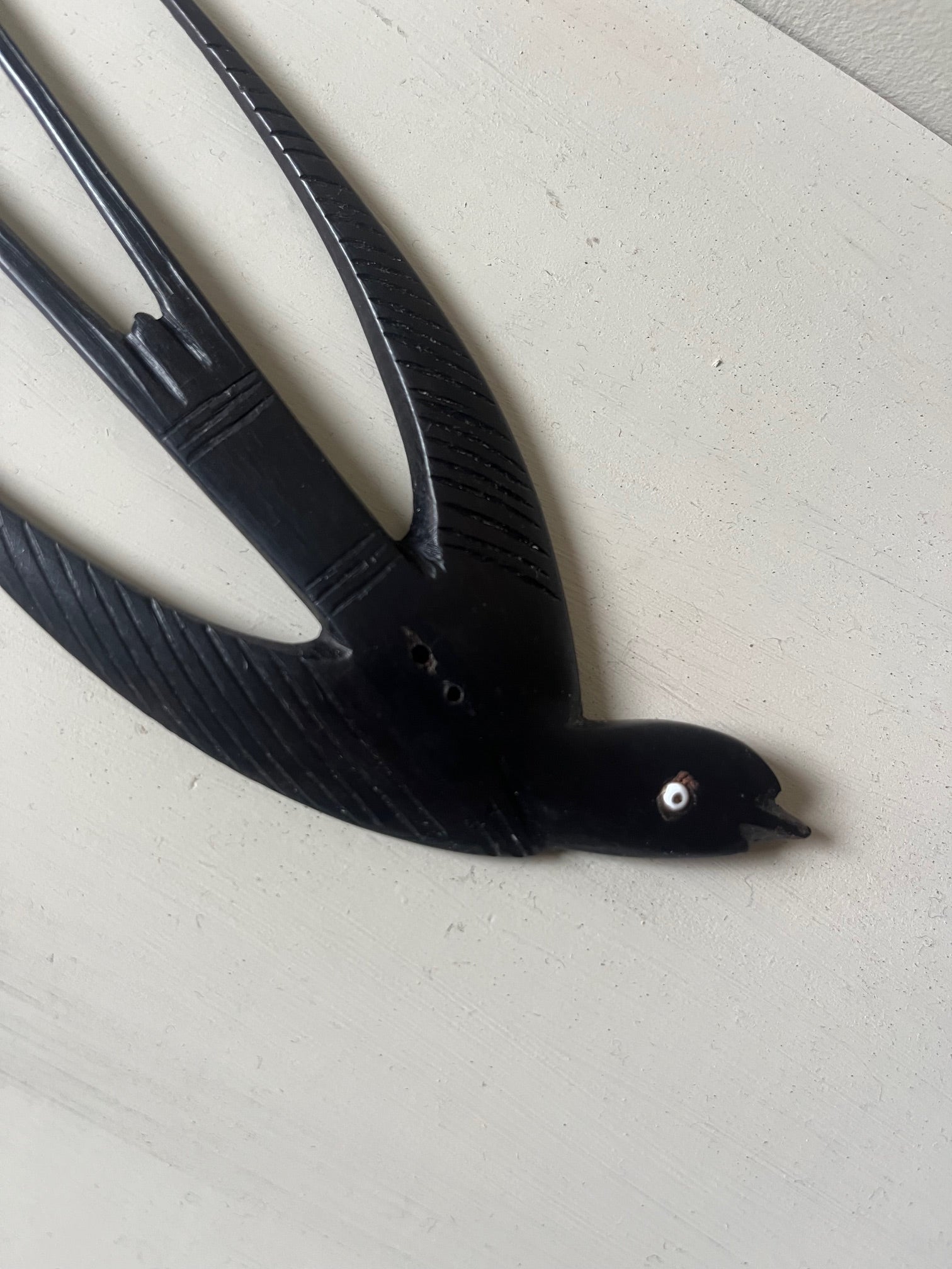 A beautiful and increasingly rare comb from Africa in the shape of a swallow. Made from ebony and dating to the mid - early 20th century, these are lovely decorative items.