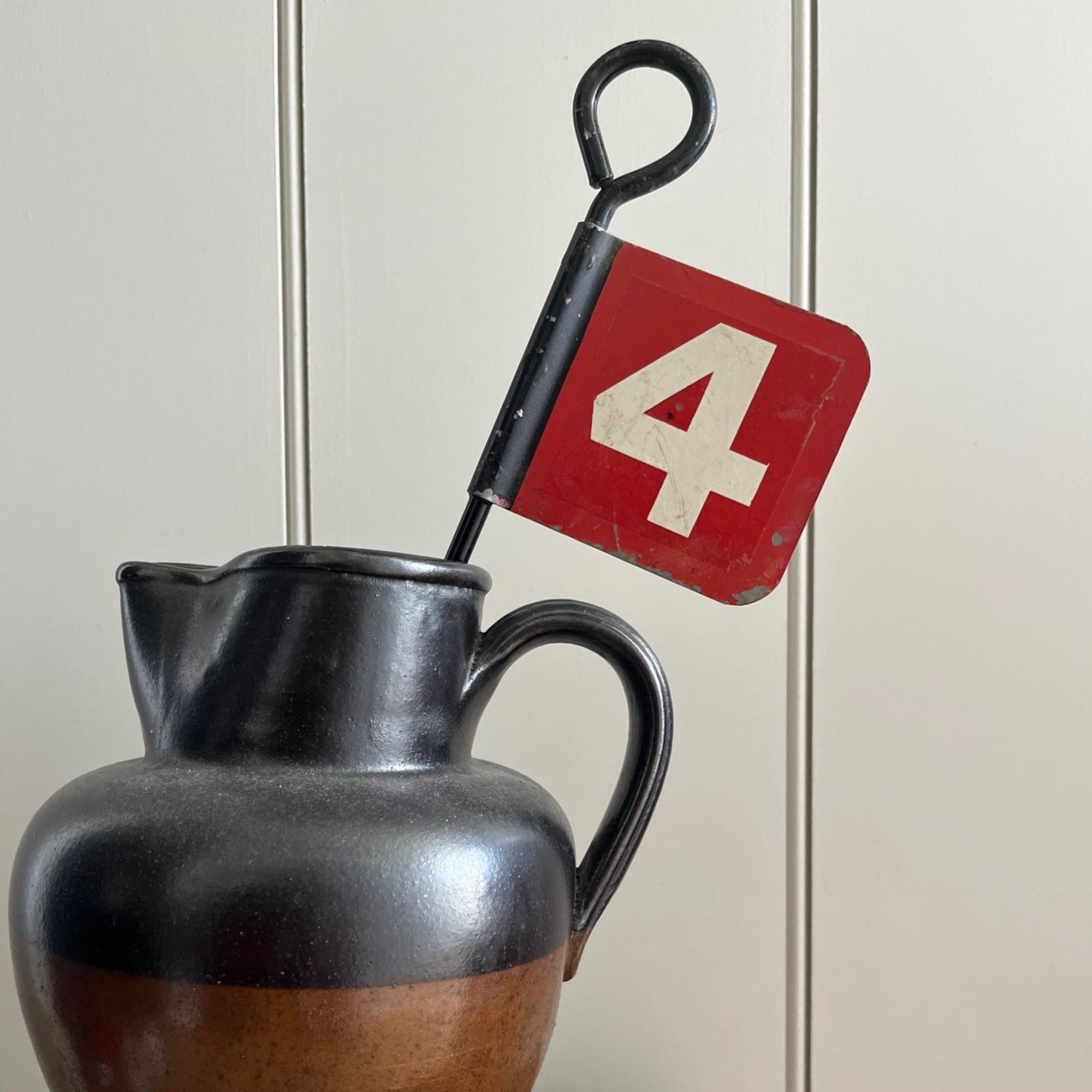 Consisting of a red flag with a white number with a painted black stem, these are great decorative items.